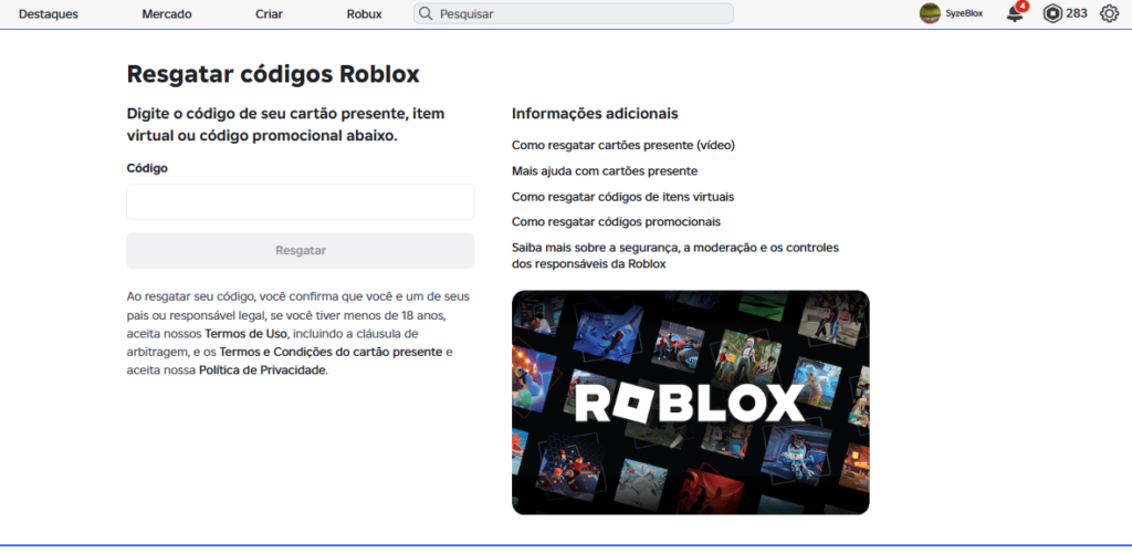 Onde resgatar códigos Roblox?